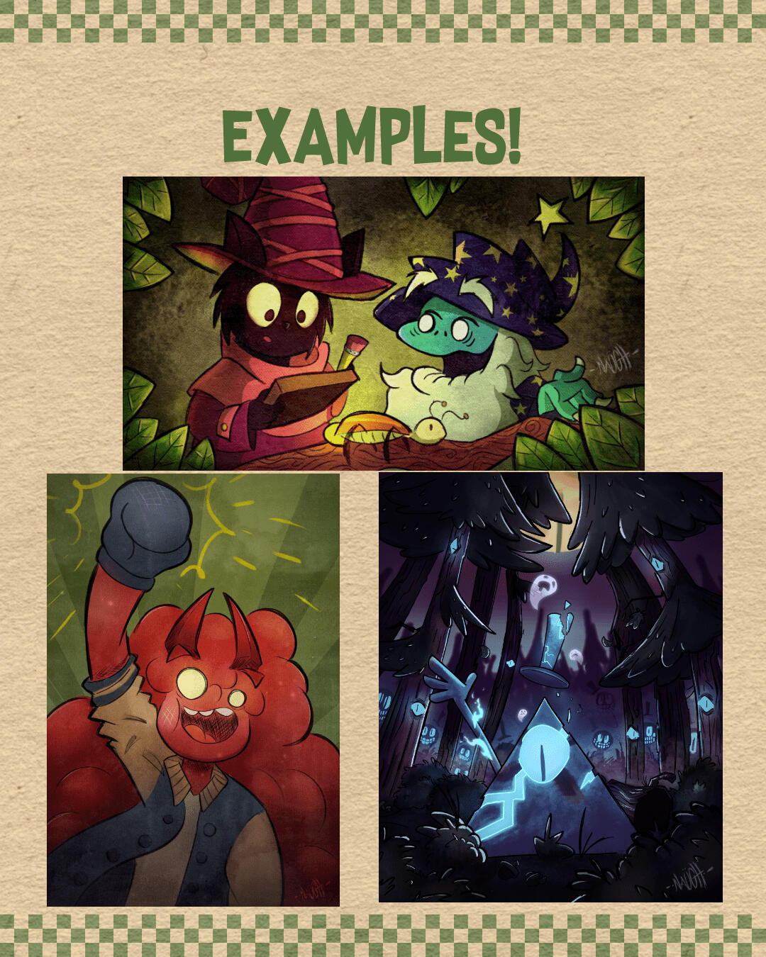 When ordering the piece, the client will be asked to be as clear, specific and detailed as possible to describe their idea (e.g. description of the scene, personality of the characters, etc.), to avoid misunderstandings with the artist.