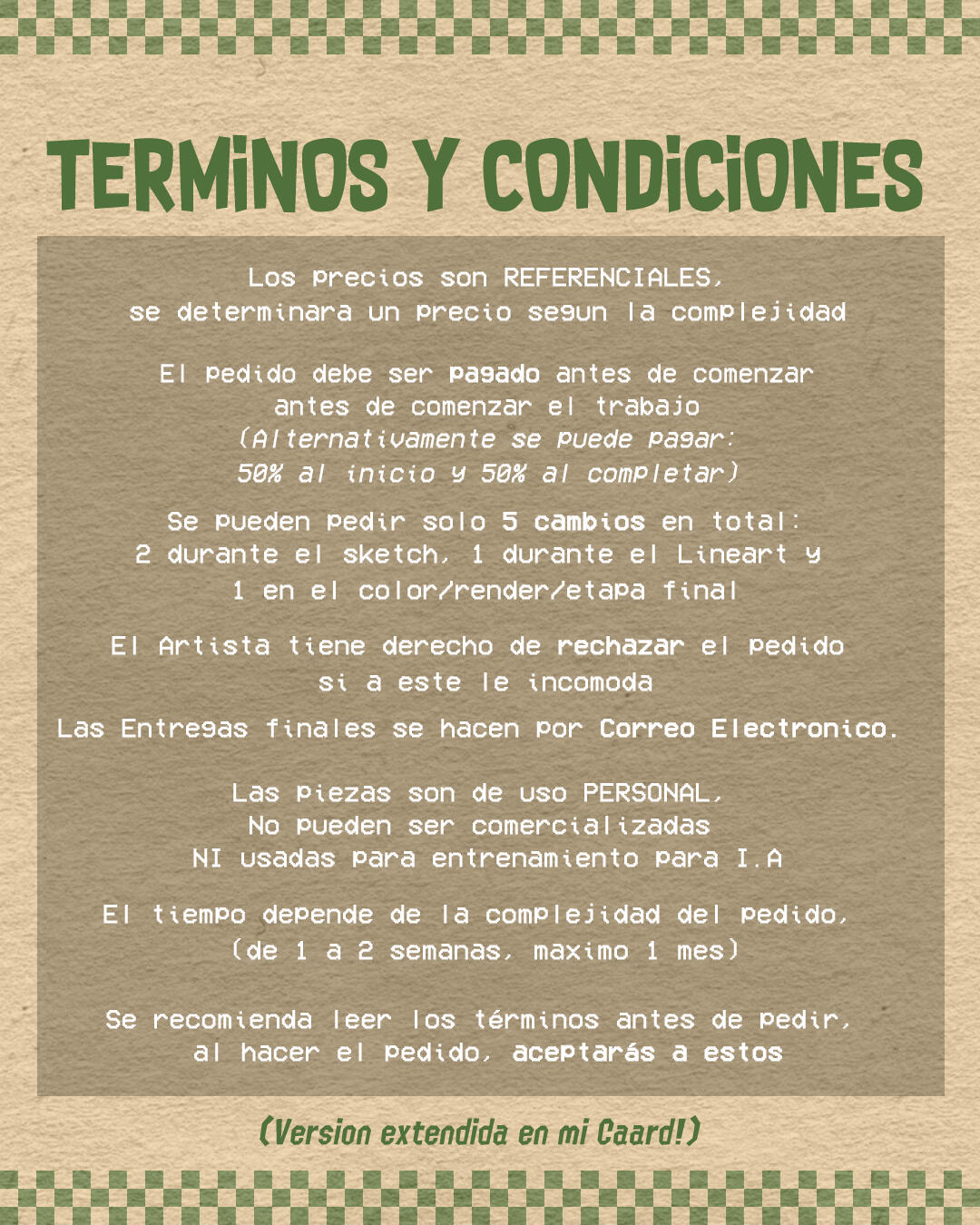 Se recomienda leer los términos antes de pedir, pues al hacer el pedido, aceptarás a todos estos.